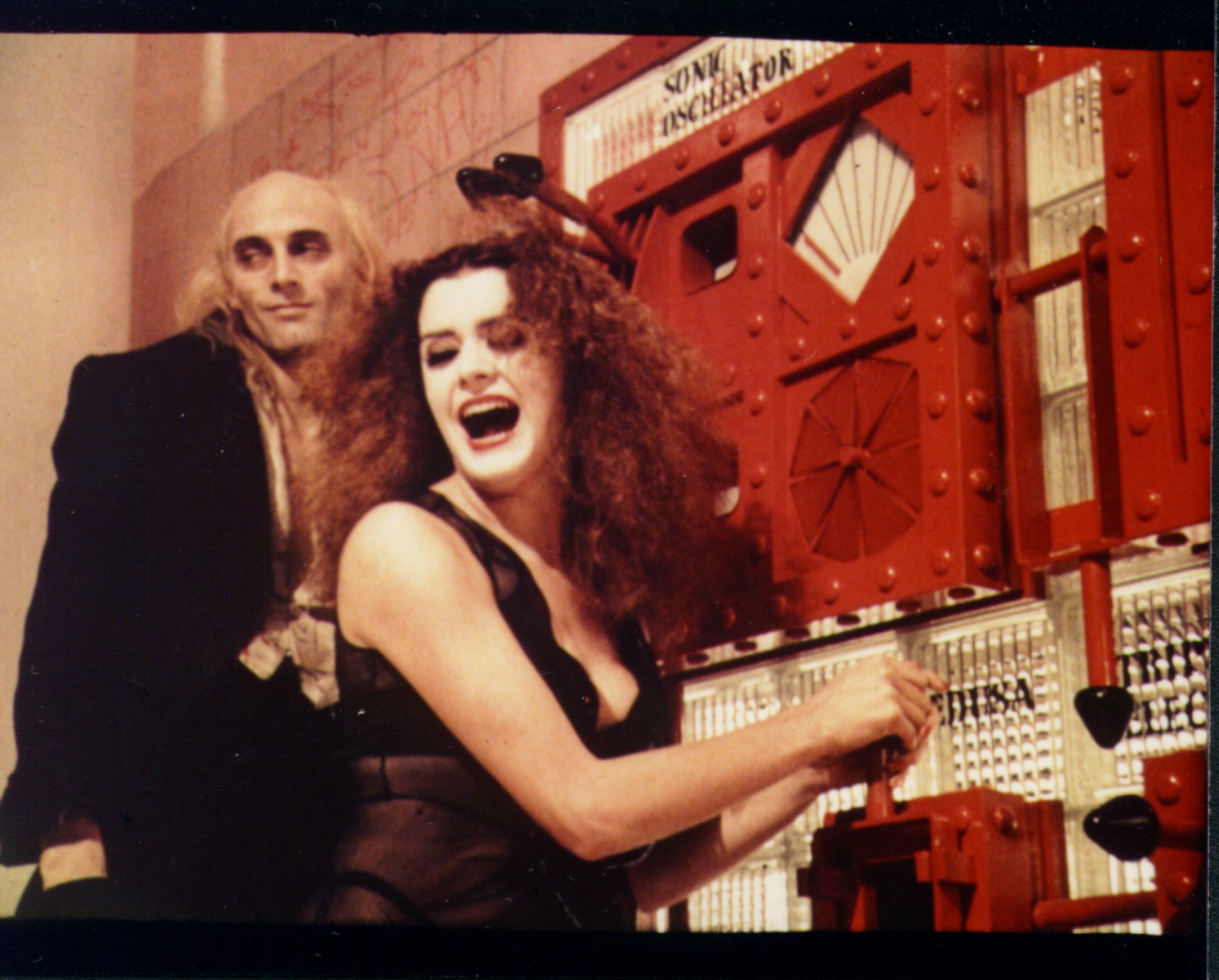 The best photos that show the front pleats are the Mick Rock outtakes of Frank, Magenta and Columbia. Click here and be prepared to squint. The pleats are hard to see; even a plastic photo page blurs out mine. Thanks to Larry Viezel's Rare RHPS Photo of the Week for the scan.